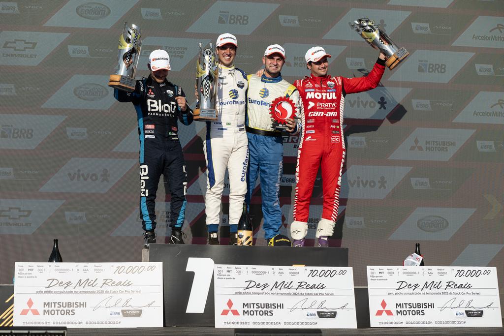 “Não está fácil pelo BOP. A gente não consegue mais brigar pela pole position. A gente precisa pensar no campeonato, maximizar o número de pontos que podemos somar. Feliz como equipe, com a quarta vitória, especialmente vendo este triplo Mitsubishi no pódio. Amanhã temos uma corrida muito importante, vamos continuar trabalhando e vamos ver se saímos daqui na liderança do campeonato com alguma folguinha”, analisou di Mauro, responsável por conquistar a nona vitória da marca na temporada e a 25ª em sua história na Stock Car. Ele agora soma 638 pontos contra 637 de Fraga.