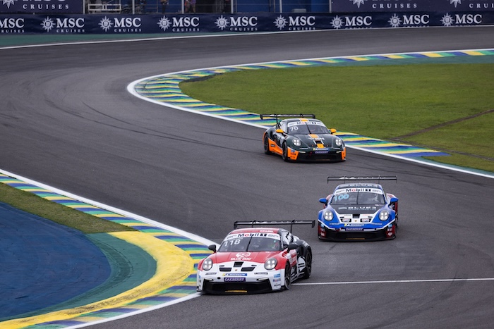 Durante um duelo na sexta volta, precisou ceder momentaneamente uma posição para evitar contato, retornando ao oitavo lugar. Logo depois, colocou o Porsche #118 lado a lado com Thiago Vivacqua e Jeff Giassi no S do Senna, protagonizando uma das manobras mais arrojadas da prova. Poucos instantes depois, o safety car foi acionado devido à chuva que voltou a cair sobre o circuito.
